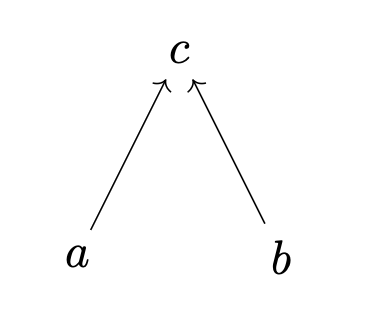 If you think of the arrows as legs, and move back and forth quickly between the two images, it looks like a body walking on two legs. if universal means system plan, then whole system following the plan while changing. But even though the forms are different, the system is always sticking to the group-level plan defined by the universal property indicated by the presence of a maximum element, c. So universal properties indicate a means by which a system can adjust its form to meet various challenges while maintaining a shared plan.
